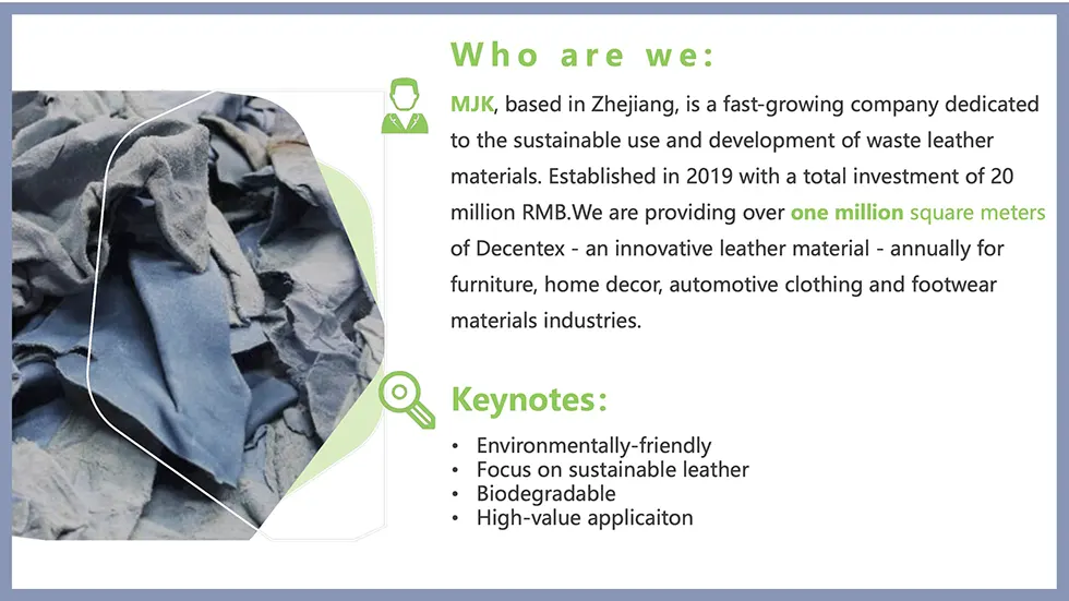 Sitoutumisemme kestävyyteen: tuhansien tonnien nahan ohjaaminen kaatopaikalta ja tuhansien tonnien hiilidioksidipäästöjen vähentäminen. Emme ole vain virittämällä jätteitä jotain arvokasta, vaan myös teemme sen prosessilla, joka säästää valtavia määriä energiaa ja vettä ja vähentää samalla hiilidioksidipäästöjä.