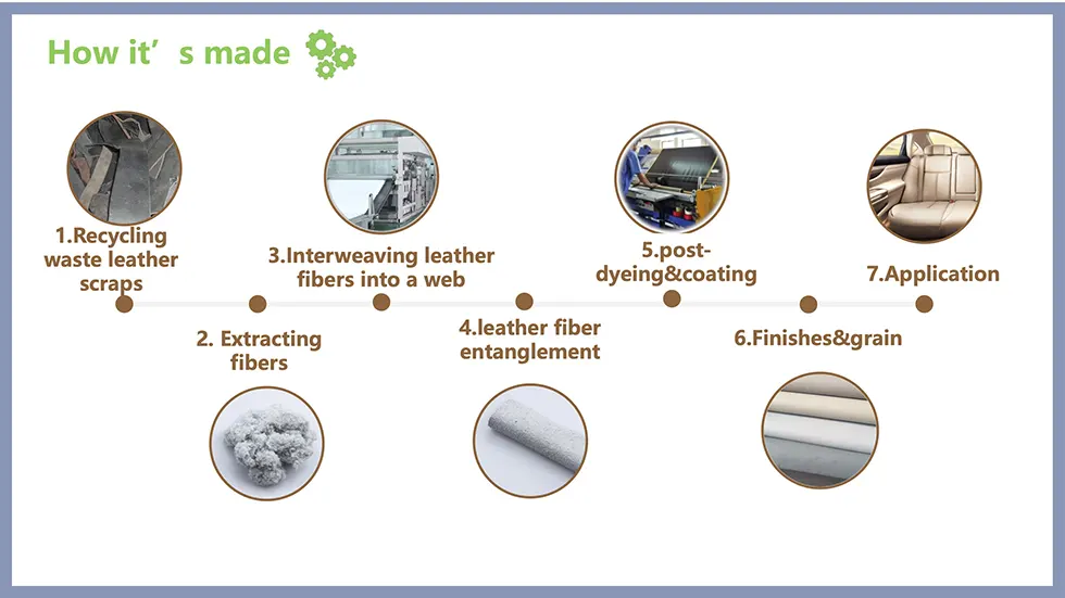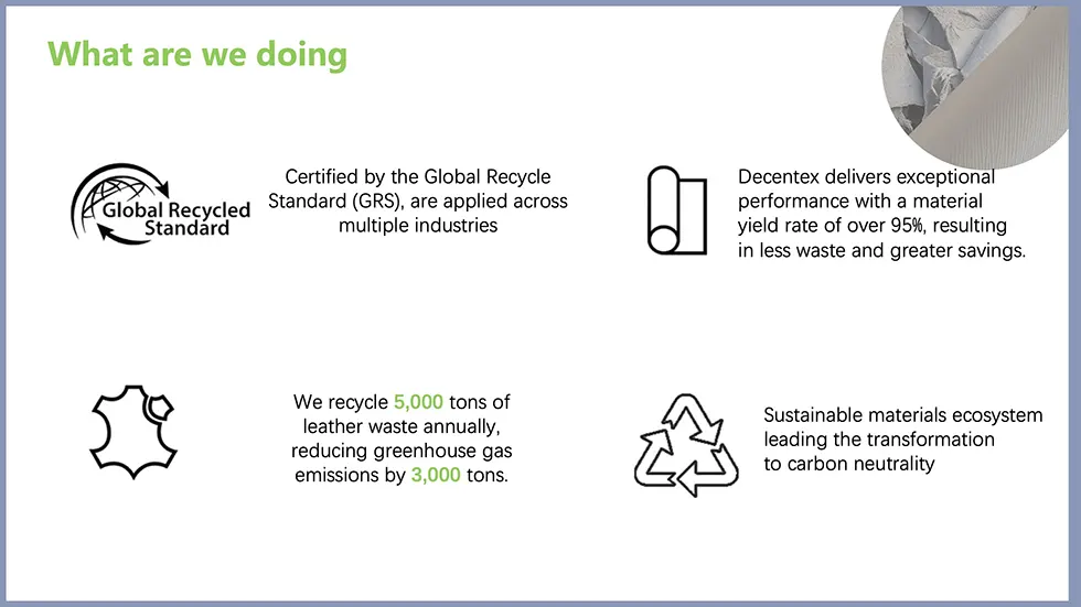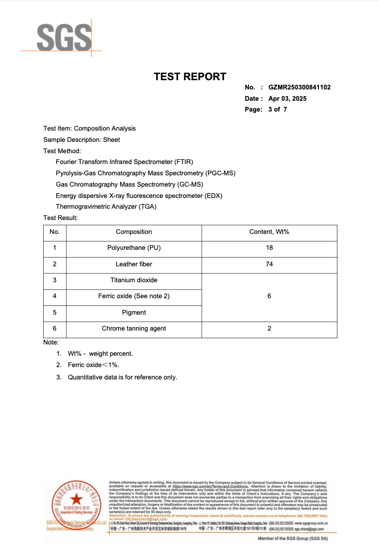 70%+ nahkapitoisuus taattu : Takaamme, että tuotteemme sisältävät 70% aitoa nahkapitoisuutta SGS-testillä, joka on hankittu yksinomaan hylätyistä nahkakatoksista. Kehittyneen uudelleenkäsittelytekniikan avulla muuntamme tämän jätteen premium -materiaaleiksi saavuttaen täysin pyöreän tuotantomallin.